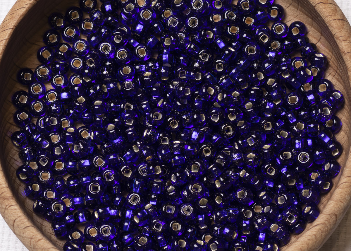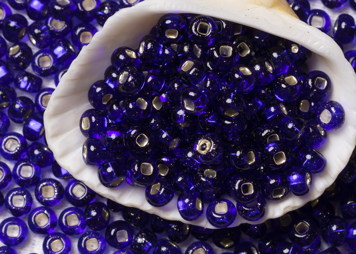 Бисер Чехия круглый 06/0 50 г 37100h прозрачный темно-синий с серебряным прокрасом квадратное отверстие