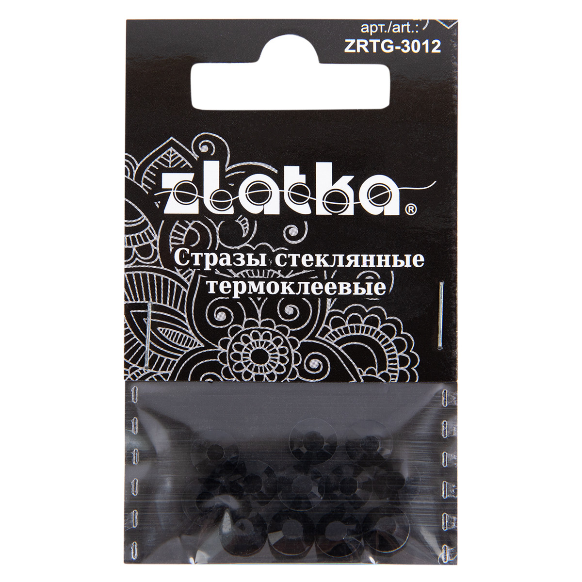 Страз клеевой " Zlatka" ZRTG- 3012 SS30 цветные 6. 5 мм стекло 12 шт в пакете с картонным еврослотом №03 черный ( Jet)